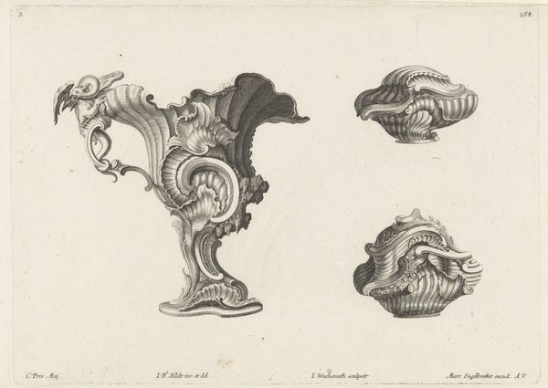Emanuel Eichel created this print, called Rocailles en plateaus, using etching. The image presents us with a series of rocaille designs, popular in the decorative arts of 18th-century Europe. Rocaille, with its flowing curves and naturalistic motifs, became the style of choice among the elite, adorning their homes and objects with a sense of opulence. This print offers insight into the world of design and craftsmanship of the time. Created in the Dutch Republic, it reflects the thriving artistic environment that existed there. The Dutch Republic’s economic prosperity and social structure allowed for artistic expression and a market for luxury goods. Institutions such as guilds played a role in regulating artistic production, maintaining standards, and providing training for aspiring artists. By studying these designs and their historical context, we can uncover the cultural values and social dynamics that shaped artistic production. Exploring period documents, design manuals, and architectural treatises, helps us to better understand the intricate relationship between art, society, and the institutions that govern them.