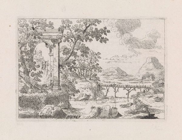 This landscape with a ruin and goatherd was created by Nicolas Cochin in the 17th century. Dominating the scene is the ruin, an emblem of the transience of human achievement. Ruins have long captured the imagination, evoking the passage of time. We see this sentiment echoed in Romantic paintings, where ruins symbolize a deep connection to history. The motif of ruins appears in art across various cultures, often linked with themes of mortality and nostalgia for a bygone era. The goatherd and goats introduce a pastoral element, a contrast to the decaying structure, and a reminder of nature's resilience. The goatherd motif carries echoes of classical Arcadia. This figure is a timeless reminder of simpler life. The ruin, therefore, is not just a structure of stone but a testament to cultural memory, a powerful force engaging our subconscious with echoes of the past.