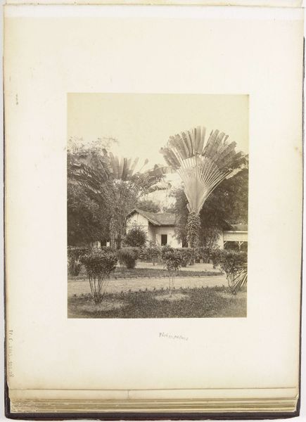 Curator: What a tranquil scene. This albumen print by Wilhelm Ivens, titled "Barbarossaruïne of Maartenskapel op het Valkhof, Nijmegen, met de beheerder van het Valkhof", captures a view of the Barbarossa ruin around 1885-1890. Editor: The albumen gives it such a soft, sepia-toned wash, doesn't it? It feels instantly nostalgic, almost like a staged theatre backdrop. All that foliage… I wonder, how much retouching went into this? Curator: The softness speaks to the influence of Pictorialism, striving for artistic effect through manipulation. What strikes me is the symbolism embedded within ruins; the arch calls to mind ideas of resilience, history’s echo... especially set against the newer plantings and carefully kept pathways. Editor: The presence of the park keeper centers it, though. This image, down to its very chemical make-up, tells a story about material change. The albumen itself is a protein, bound to the paper, permanently altered. These layers speak to cycles of decay and preservation, commodified in photographic form for distribution and trade. How was this consumed, archived? Curator: Interesting. The figure stands at the threshold of past and present, then—caretaker of physical ruin and photographic memory. Look closer – the way the photographer composed the view invites introspection; each form signifies themes like preservation and human dominion over both time and place. Editor: Absolutely. And the medium itself plays a crucial role in how that dominion gets exerted. We're seeing here a crafted commodity intended for visual consumption. Mass production impacts and mediates not only cultural heritage and iconography but it creates networks through the very circulation of this printed object. Curator: So it isn't solely a reflection on what's depicted but equally revealing of its socio-economic dimensions? Very insightful. Editor: Precisely. An unassuming photographic print speaks about materials, work and value that helped make history so… tangible, one little sepia scene at a time.