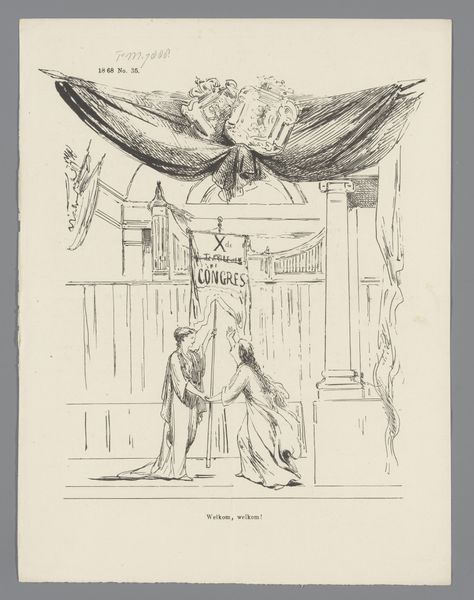 “Badgasten” by Willem van Konijnenburg is a black and white drawing depicting a crowd of people. The artist, born in 1868, lived during a time of significant social change and artistic exploration. This work seems to offer a satirical view of society. The exaggerated costumes and expressions of the figures suggest a critique of bourgeois culture. In this context, the drawing hints at the complex interplay between personal identity and social expectations, especially concerning class. The artist's use of caricature invites us to reflect on how society judges and categorizes individuals based on appearance and social standing. What feelings does this artwork evoke for you, considering the ways society constructs identity and acceptance?