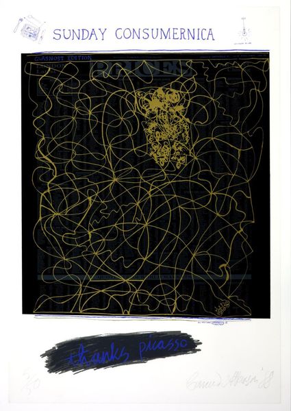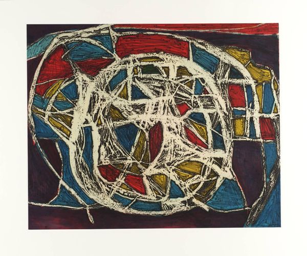 Curator: This untitled piece is by Terry Winters, currently held in the Tate Collections. It measures approximately 345 by 425 millimeters. Editor: It’s captivating! The lines create such a raw, almost visceral feeling. I’m immediately drawn to the materiality of the piece, how the artist uses line to imply texture. Curator: Winters often explores systems of representation, drawing from scientific imagery. His work frequently blends art and science, reflecting on our changing understanding of the world. Editor: The process seems crucial here, the layering of marks, the visibility of the artist's hand. I see the tension between control and chance in this network of lines. It reminds me of printmaking, the pressure of the plate. Curator: Exactly. The lack of a title might suggest an openness to interpretation, allowing us to project our own meanings onto these forms. Editor: It seems like Winters is questioning the very act of image-making and its role in shaping our perception. Curator: A very insightful observation, considering the sociopolitical climate in which abstract art gains prominence. Editor: Yes, making me reconsider the cultural values placed on artistic techniques and materials. Curator: Precisely. Thank you for considering how this piece might be a subtle, but powerful statement on those values.