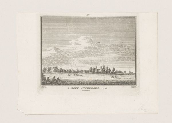 Curator: Here we have Hendrik Spilman’s “Gezicht op het dorp Laren in Noord-Holland,” a cityscape drawing rendered on paper and using an engraving technique, dating back to 1745-1774, residing here at the Rijksmuseum. What are your initial impressions? Editor: Oh, it feels so… pastoral, yet meticulously crafted. The engraver really embraced the sky! It gives the scene this wonderful sense of immense calm hanging right above this very tidy village. Like you could just step into a dream there. Curator: Indeed. Spilman's choice of engraving as a printmaking method highlights the artisanal production involved. This would have necessitated skilled labor in the crafting of the plate from which multiple impressions could be made. Think about the labor processes embedded in reproducing and disseminating this rural scene! Editor: Right! It's easy to forget about all the hands involved in creating a single artwork, even something as seemingly straightforward as this. I keep imagining sitting under one of those sketched trees and just... losing track of time. What do you think this says about our present nostalgia for this image of small-town rural existence? Curator: The image certainly romanticizes rural life! It reflects a specific consumption of landscape prints, aligning with a developing Dutch identity rooted in picturesque villages. There's a political and economic dimension too: this representation could have served to both idealize local industry and smooth over labor tensions within these communities by painting a picture of bucolic ease. Editor: Mmm, yes, an idealized Dutch Dream. What do we leave out by only selecting such lovely scenes? Like, were the sheep having a blast? Did the cheese-makers find joy in their whey? What kind of exploitation lurks under the surface of its placid atmosphere? Curator: A critical question! Spilman gives us a very selective view of labor. But let’s take another moment with the materiality; note the print size and quality of paper that indicates particular value and consumer. Editor: Right. Well, considering the process and all its contexts, I suppose I leave now with a far more detailed and troubled pastoral dreamscape! Curator: Indeed. Perhaps by examining these prints and interrogating what exactly is displayed, as well as how, can we consider that pastoral ease and those untold realities together.