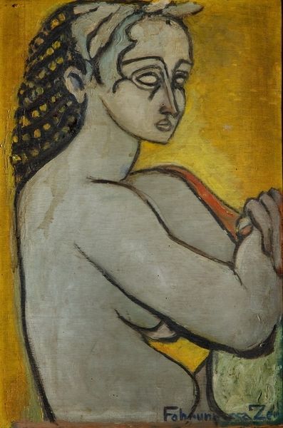 Here, at The Art Institute of Chicago, we have Paul Gauguin's small oil on canvas "Portrait of the Artist’s Mother (Eve)". The composition is strikingly simple: a pale, ethereal figure set against blocks of red and blue, crowned by an abstract yellow form. This arrangement evokes a sense of serene detachment. Gauguin manipulates color and form to challenge conventional portraiture. The flattened perspective and bold color choices, depart from traditional representation, hinting instead at symbolic meaning. The figure’s nudity, combined with the title ‘Eve’, invites a semiotic reading: she becomes a signifier of primal innocence, yet the overall effect, with that ochre yellow is not one of pure origins, it is one of constructed identity. The very texture of the paint—thick in some areas, thinly applied in others—adds another layer of complexity. The canvas's rough edges disrupt any illusion, reminding us of the artwork's materiality. This work destabilizes fixed meanings. In its re-presentation of Eve, and its construction of form, Gauguin offers an ongoing invitation to interpret the very essence of identity and representation.
