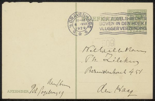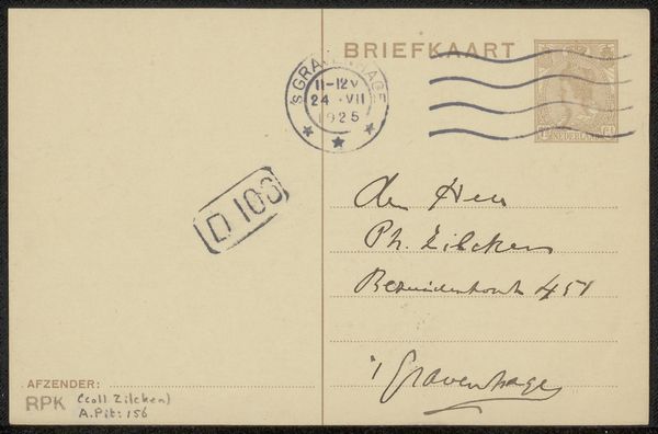 This is a postcard to Philip Zilcken by Adriaan Pit, from 1928. It's not exactly a painting, but it’s definitely a form of mark-making. Think of the postmark, the stamp, the lines and handwriting, all these little gestures placed on the card. What I love about this piece is the texture of time. The slightly yellowed surface of the card, the faded ink, it all tells a story about the past. It's kind of funny, a piece of mail becomes a piece of history. Look at the handwriting, the loops and curves, it's so personal. You can almost feel the person writing it. It's a reminder that art doesn't always have to be grand or monumental. Sometimes it can be something as simple and everyday as a postcard, but still carry so much meaning and emotion. For me, it brings to mind the work of someone like Cy Twombly, who also found beauty in the everyday and the discarded. It just goes to show that art is everywhere, if you just take the time to look.