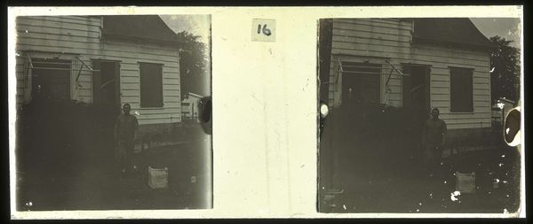 Curator: What immediately strikes me is the sense of quiet contemplation. The woman, posed so serenely on the veranda, exudes a remarkable calm, almost melancholic, despite the warm surroundings. Editor: Indeed. This is a gelatin silver print, created sometime between 1913 and 1930, by Theodoor Brouwers. It’s titled "Heerenstraat 18 in Paramaribo," placing it firmly within a specific colonial context of early 20th-century Suriname. It depicts the cityscape but also portraiture and perhaps even orientalism style through the sitter's gaze and environment. Curator: That colonial context is essential. How might the politics of representation, the gaze of the photographer, shape our understanding of this image? The woman seems posed, positioned within the trappings of domesticity—yet is this a genuine moment of leisure or a staged performance for the colonial audience? Editor: Brouwers likely aimed to capture the exotic allure of Paramaribo, reinforcing existing stereotypes of the region. But there's also an intimacy to the image. The details, like the wooden fretwork and the overgrown plants, point to an engagement with the local environment, beyond simple exploitation. We must also think about the institution presenting it; what is the impact of this work being displayed in the Rijksmuseum? Curator: It becomes crucial to consider how identity, specifically gender and race, are negotiated here. Is she empowered by owning domestic space or complicit in its colonial fantasy? What do you read from her positioning within the frame? Editor: She commands a central space in the frame but there's a vulnerability implied by the very act of being photographed for posterity, or to become a visual story for European narratives. The composition almost certainly dictates that viewers must ask themselves: What stories of agency are not revealed through that encounter and by this medium? Curator: Those layers of meaning enrich the piece significantly, moving it beyond just a picturesque scene. We see the image now as one layered with colonial tensions. Editor: Agreed, the photograph offers not a simple snapshot of history, but rather an intriguing site to critically examine colonialism, representation, and the untold stories of those who lived it.