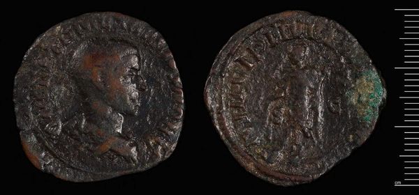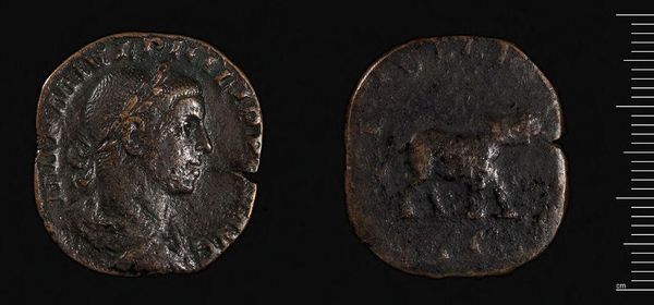 Editor: Here we have a Sestertius, a coin of Severus Alexander. The wear and tear really speak to the coin's age and material. What can you tell me about it? Curator: The coin, beyond its iconic imagery, embodies complex labor systems. Think about the extraction of the metal, the skilled artisan crafting the die, and the vast Roman economy it facilitated. How does considering that materiality influence your view? Editor: It makes me think of the resources and labor required to create even a seemingly small object. It's a lot of social context embedded in this little coin! Curator: Precisely. This sestertius isn't just currency; it's a dense record of production and power dynamics. Editor: That gives me a lot to reflect on. Thanks for pointing that out.