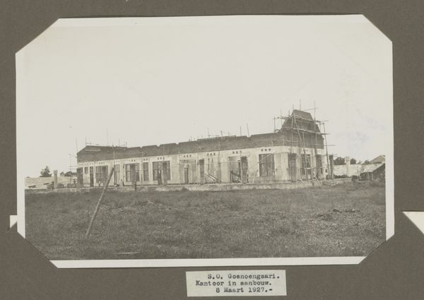 This is a photograph, taken in May 1926 by an anonymous photographer, showing employee housing under construction. The monochrome palette here gives the scene a timeless quality, even though we know it was taken almost a century ago. It makes you wonder about the story behind the image, who took it, and why. The texture of the photo is interesting, it is very smooth and even and the tones are consistent across the image. Look at the way the buildings fade into the background, the sharp lines soften, and the details become less distinct the further away they are. This gradient creates a sense of depth, drawing our eyes into the scene. It’s like a whisper, inviting us to imagine the lives that will unfold in these houses. There's something about this scene that reminds me of Ed Ruscha’s photographs of Los Angeles architecture, a similar sense of quiet observation and understated beauty in the everyday.