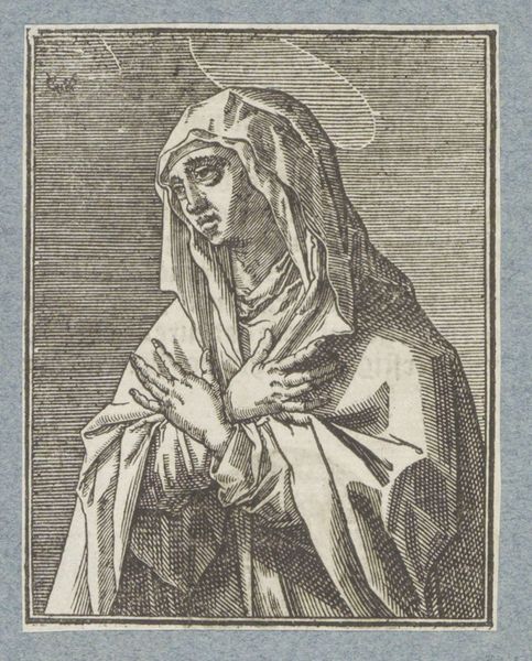 Elisabetta Sirani created this etching of the Virgin Mary in the 17th century. Sirani was one of the first women artists to achieve international fame, in a time when women were largely excluded from the art world. Here, Mary is depicted with a gentle and serene expression, her eyes cast downward in contemplation. The fine lines of the etching capture the soft folds of her robe and the delicate features of her face. Sirani's decision to portray Mary in such a tender and human way challenges the traditional, often idealized, representations of religious figures. By focusing on Mary's inner thoughts and emotions, Sirani invites us to connect with her on a more personal level. Consider how Sirani, as a woman artist, might have brought a unique perspective to this portrayal of the Virgin Mary, infusing it with a sense of empathy and understanding that resonates across centuries.