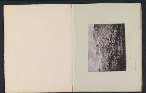 Curator: This work by Friedrich Simony, titled "Gezicht op Sankt Martin am Tennengebirge," created around 1887, captures the Austrian landscape in tones of grey. The artwork is presented in a printed photograph. What are your initial impressions? Editor: My eye is immediately drawn to the almost monochrome palette and its compositional choices; there's a stark interplay between the colossal mountain form on the left and the small-scale elements defining the inhabited valley on the right. Curator: Yes, let's consider Simony’s landscape work as part of a burgeoning industry that provided images for tourists and promoted certain picturesque narratives. The reproducible nature of photography allows these views to proliferate beyond unique paintings. Editor: The reproducible aspect is intriguing. Can we explore the subtle contrasts Simony employed? The granular textures of the print enhance its atmospheric feel, inviting us to examine the visual dynamics that organize it, almost inviting the viewers to insert themselves into the frame. Curator: I find it fascinating how this type of image facilitated access to specific, cultivated ideas of landscape, especially considering tourism's effect on the area's infrastructure, hotels and trails for accessing viewpoints just like this one. Consider too, the material cost involved. The printing press that gave us this image changed the material landscape. Editor: Indeed, those material realities do invite us to question assumptions and expectations that shape perception and representation. Even within a limited tonal range, the textures guide us, creating depth within a flattened plane and establishing contrasts within nature's grandeur. Curator: In this image, we see more than just trees and mountains; we are seeing capital investments and shifting patterns of material distribution that supported that specific, fleeting moment in time. Editor: And with the use of a muted photographic palette, one sees this instant is fixed into this print format; a specific artistic representation that, on examination, becomes a statement within that same landscape. Curator: The photograph allows us to look closely at this historic viewpoint. It provides, in its tones, insights into production chains, labor and the relationship that all share with a specific geography. Editor: By attending to these contrasts, we sharpen our sense of form and spatial configuration in nature and manufactured realities that shape art itself.