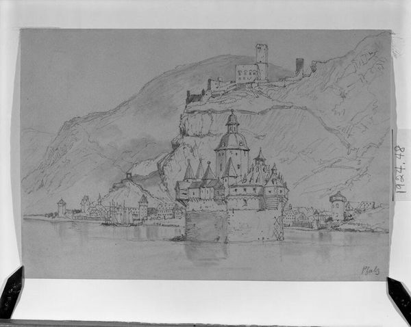 Curator: David Roberts' "Ehrenbreitstein" captures the fortress as a looming presence, rendered in subtle washes. Editor: It’s quite somber, almost gothic. The muted palette emphasizes the monumentality and evokes a sense of historical weight. Curator: Roberts, a 19th-century Scottish painter, often explored themes of power and history. Considering the sociopolitical context of the time, how might the fortress symbolize imperial ambition? Editor: Fortresses always speak of defense, but more profoundly, of territorial claim. The very shape evokes the collective desire for protection against external threats, real or perceived. Curator: It’s interesting to consider how images of power are constructed and disseminated. Roberts’ work contributes to a romanticized, yet imposing, vision. Editor: Definitely. Symbols of power are rarely neutral; they reveal the anxieties and aspirations of an era. This piece leaves a strong impression about that period.