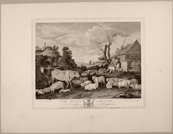 Editor: Here we have "The Happy Peasant" by François Vivares. It's a rather idyllic scene, almost like a pastoral dream. I wonder, what's your read on this piece? Curator: It's like stepping into a simpler time, isn't it? Vivares captures a romantic view of rural life, probably a bit idealized, considering the realities of peasant life back then. Notice the light, how it softens the edges, lending a gentle quality. Editor: I see what you mean about the light. So, is it more about the feeling than the factual? Curator: Precisely! It's less about documenting reality and more about evoking a mood, a longing for a simpler, perhaps imagined, past. We all do that sometimes, don’t we? Editor: Definitely food for thought. It makes you wonder about our own romanticized views. Curator: Indeed! It prompts us to consider what aspects of life we choose to emphasize and cherish.
