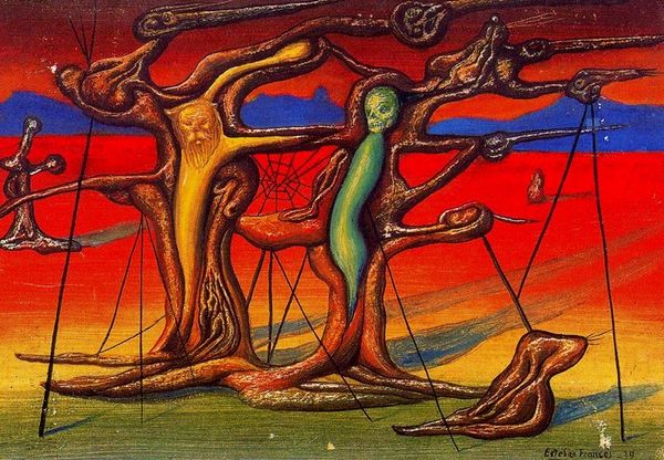 Sabin Balasa’s Cosmic Wedding is a real trip - a vision of humanity and nature painted in deep blues, greys, and fleshy tones. The artist has sectioned the painting into these little vignettes, and framed them with swooping tree-trunk-like curves. They remind me of Diego Rivera's murals, but if he'd been into yoga and cosmic oneness! The paint is applied in a way that gives everything a soft, almost blurred look, like you're seeing it through a dream. But there's also a real sculptural quality in the way the paint is built up, giving a tangible texture to the figures and forms. Take a look at the upper left, at the nude figure flailing in mid air: the artist almost seems to be carving the figures out of this cosmic goo, rather than painting them. The whole thing has this really raw, intuitive feel, like Balasa was just going for it, letting the paint and the process guide him. It’s like he’s in conversation with the likes of Remedios Varo or Leonora Carrington. Both of those artists also used a smooth, controlled paint application like that found in Cosmis Wedding, but painted enigmatic scenes with occult symbology.