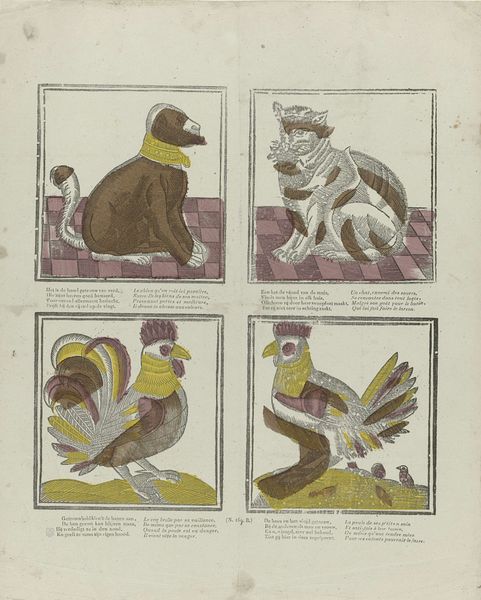 This educational print, showing various species of birds, was made by W. van Bergen, in the Netherlands, at an unknown date, using printing techniques on paper. The methods of production and materials are key to understanding its role. It is a mass-produced image intended for a wide distribution, likely created using woodcut or etching, and printed on relatively inexpensive paper. The addition of color, probably applied by hand using stencils, makes each impression unique, yet part of a larger series. Consider the labor involved: from the artist who designed the images, to the craftsmen who cut the block, to the individuals who operated the printing press and applied color. Each person contributed to the final product, highlighting the collaborative nature of printmaking. Prints like this challenge our conventional idea of "art," because it existed to disseminate knowledge and entertain. It reminds us that aesthetics and utility were once closely intertwined.