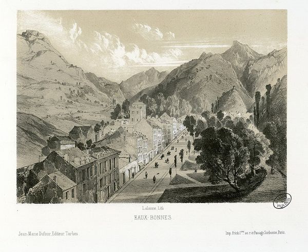 Maxime Lalanne's "Betharam de Lourdes à Pau" captures a site of spiritual passage, with an arched bridge leading to a sanctuary. The bridge, an ancient symbol of transition, appears across cultures, from the Roman Pontifex Maximus, the "greatest bridge-builder," to the Bifröst in Norse mythology, a rainbow bridge connecting the earthly and divine realms. Psychologically, the bridge represents a passage from one state of mind to another. It symbolizes overcoming obstacles and achieving spiritual or emotional breakthroughs. Note how the towers of the sanctuary subtly echo the mountains in the background. This visual mirroring connects the sacred space with the natural world. Mountains, in many traditions, signify transcendence and the meeting point between heaven and earth. The sanctuary nestled within this landscape invites contemplation, offering solace, and a path toward inner peace. In the cyclical currents of history, the symbolic weight of these images—bridges, mountains, sanctuaries—reverberates, influencing how we engage with the landscape and our own spiritual journeys.