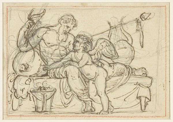 Editor: This ink drawing on paper, "Neptun auf dem Meer fahrend," attributed to Luca Cambiaso, presents a dynamic scene with Neptune amidst powerful horses. I’m struck by the raw energy in the lines, it's a powerful display. How do you interpret the work’s social commentary, if any? Curator: Well, Cambiaso, operating within the High Renaissance, consciously and unconsciously reflected his time’s understanding of power dynamics. The very choice of Neptune, a male god dominating the seas, hints at prevailing patriarchal structures. Notice how Neptune controls the horses; can we interpret this as the suppression of raw, natural forces, perhaps mirroring societal control? Editor: That's a fascinating reading. I hadn’t considered the gendered implications so explicitly. Is it fair to read the landscape elements through a similar lens? Curator: Absolutely. Landscape, then and now, is never neutral. Whose landscape is it? Who has access? Whose stories are being told, or erased? The dominance over nature symbolized here needs unpacking, and how that intersects with class and colonialism too. Do the turbulent waves present a threat or something to be conquered? Editor: So, beyond just admiring the artistry, we can use this drawing as a springboard to discuss power, gender, and even humanity's relationship with the natural world. It's all there. Curator: Exactly! Art provides an invaluable point to anchor these much broader sociopolitical discussions. By interrogating historical works, we start understanding current inequalities, especially where race, gender and environment are concerned.