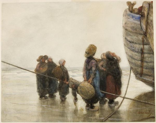 Konstantin Alexeevich Korovin painted "Trading Post in Murman" to portray the atmosphere and people of Russia's northern coast. This piece invites us to consider the lives of the fishermen, the realities of labor, and the complex relationship between humans and the environment. Korovin captures the working class environment and the quiet dignity of the men who depend on the sea for their livelihoods. The focus of the piece is the large flat fish hung for trade, looming over the men who are dwarfed by its size. Korovin does not shy away from showing the rawness of their existence. His decision to portray the scene with such unflinching honesty reflects the harsh realities faced by many in Russia at the time. In "Trading Post in Murman", Korovin asks us to consider the human condition. The painting serves as a reminder of our shared humanity and the enduring power of the human spirit to persevere in the face of adversity.