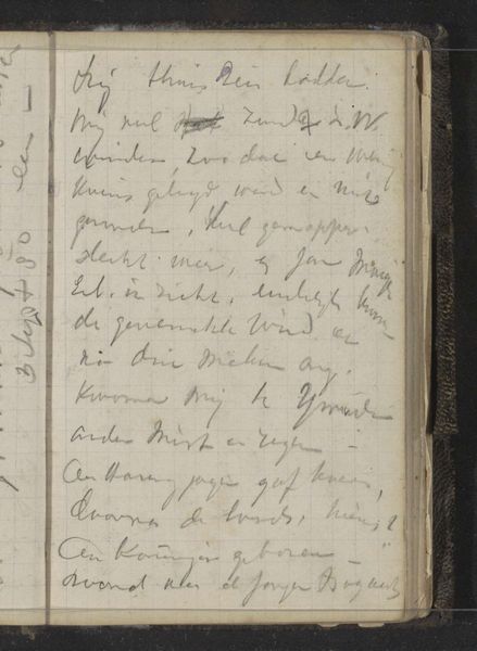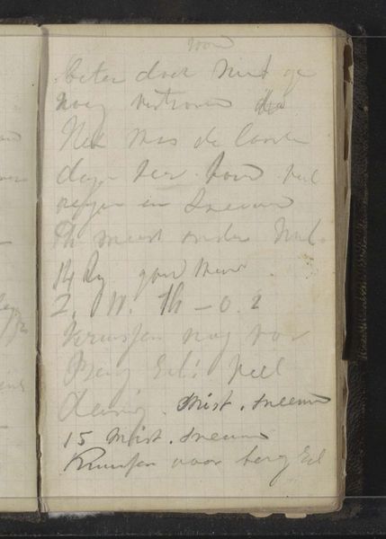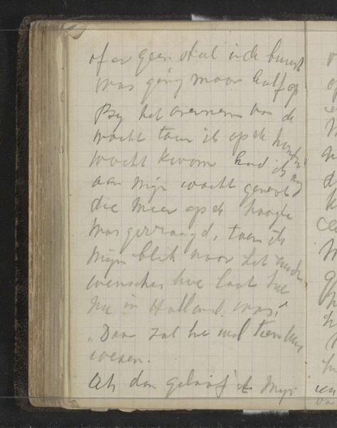 This is a page from Louis Apol's travelogue from early September 1880, created with paper, ink, and his own handwriting. He wasn’t using traditional art materials here; instead, he’s employing the everyday tools of documentation. Consider how the very act of writing – its speed, its pressure, its rhythm – influences what ends up on the page. The cursive script, sloping slightly upward, suggests the energy and focus of the artist, while the ruled lines of the paper provide structure and order. The handwriting, as a skilled tradition, echoes other forms of creative expression, bearing an aesthetic quality beyond mere communication. This isn't just about recording facts; it's about capturing a personal experience. Think of the labor involved in creating such a record. Each word, each sentence, represents a moment of thought and observation. Apol isn’t just passively recording; he is actively shaping his memories, and so the work becomes a testament to the power of craft and the importance of context in understanding the full meaning of an artwork.