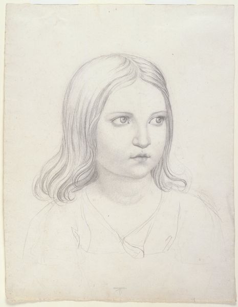 Jozef Israëls made this drawing, "Portret van een meisje," with a graphite pencil on paper. Immediately, the delicate network of lines catches the eye. It's an intricate dance between light and shadow. Look closely at how Israëls constructs the face with these lines. They aren’t just outlines; they build volume and texture, particularly around the eyes and mouth, which gives the girl a quiet, contemplative presence. The cross-hatching in the background and clothing contrasts with the smoother, more deliberate strokes defining her face, pushing it forward. Israëls uses a semiotic language of drawing. The soft, almost hesitant lines signify not just a physical likeness but a certain psychological depth. Is it a comment on the transient nature of youth? Perhaps it speaks to the inner life of the subject, a common theme in 19th-century portraiture. Consider the incompleteness of the drawing. This open-endedness invites us, as viewers, to participate in completing the image, to project our own interpretations onto the girl’s portrait. The drawing then becomes a site for contemplating not just the subject, but also the act of seeing itself.