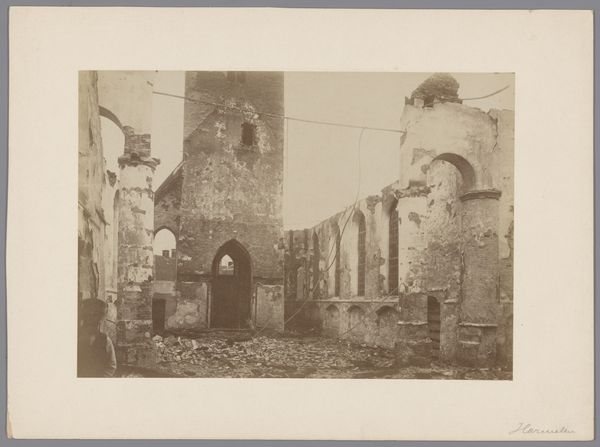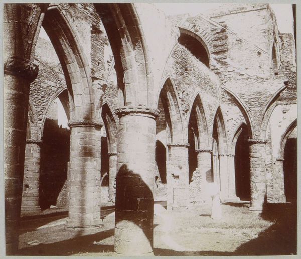 Editor: Here we have Joseph Cundall's photograph "Bolton Priory, From the South," dating back to the 1850s. It's a gelatin-silver print. The crumbling architecture evokes a sense of time and decay. What strikes you about this piece? Curator: The tangible presence of labor. Each stone, each carefully constructed arch, represents countless hours of manual effort. And look at the ruins themselves – a material testament to social and political shifts that caused this priory’s decline. Think of the hands that quarried and shaped the stone versus the hands that perhaps dismantled or neglected it. Editor: So, you're saying the image isn't just about romantic decay, but also about the lives and labor embedded within the physical structure? Curator: Precisely. Consider also the materials themselves: stone, mortar, glass. Where did these originate? How were they transported? These seemingly simple elements speak volumes about trade, resource extraction, and the power structures of the time. Photography itself becomes a material process too – gelatin, silver, light. Each contributing to the construction of this image. Editor: I never really thought about photography having materials of its own. Curator: It is another step in the consumption and creation of material objects. We might also consider why Cundall chose this specific viewpoint, this framing. How does the act of photographing transform the already charged landscape? Editor: So it is more than ruins, but rather the culmination of social labor that constructed both the priory and photograph, all subject to decay and human control. I will never see a ruin the same way again. Curator: Indeed. It reveals the intertwined histories of creation, consumption, and representation through a lens of materiality.