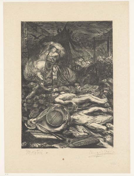 Henri de Groux's print, "Morituri," presents us with potent symbols of death and revolution, rendered with frenetic energy. Dominating the scene is the grim figure of a soldier, evoking the chaos and violence of the French Revolution. Here, Groux echoes the classical motif of the "triumph of death," but with a modern, revolutionary twist. We see echoes of the medieval Dance of Death, yet transposed to a political stage. The guillotine looms large, a stark reminder of revolutionary justice. This instrument of execution carries a heavy cultural weight, embodying both the promise of liberation and the terror of mass execution. Consider, too, how the artist conveys the emotional toll of political violence. The faces in the crowd are blurred, suggesting a loss of individual identity to the collective frenzy. It's a powerful expression of collective trauma, one that resonates across time and cultures. The image serves as a stark reminder of the cyclical nature of history.