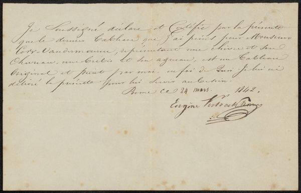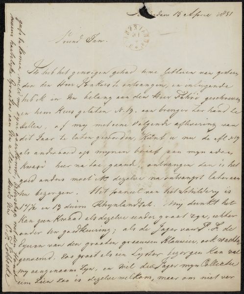 Jacob de Vos Willemsz. wrote this letter to Adriaan van der Willigen in 1814, using ink on paper. It speaks to the social networks of the time and how personal relationships could influence professional opportunities. The letter likely reflects the importance of patronage and personal connections in securing positions or favors within Dutch society in the early 19th century. It demonstrates the role of letters in mediating social and professional relationships at a time before rapid communication technologies. Historical societies and archives would be good resources to consult for further research. Looking at correspondence networks and institutional records from the period might reveal more about the dynamics of patronage, professional advancement, and social mobility in the Netherlands at this time. The meaning of this letter is contingent on the social practices of its time, and we can only understand it through careful study.