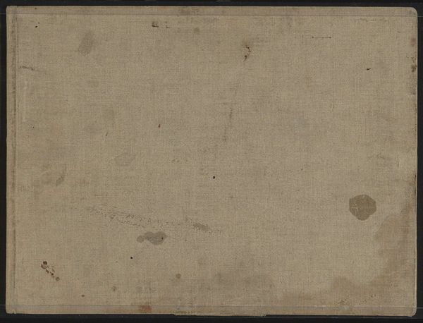 Curator: This is a sketchbook with 68 leaves by Bramine Hubrecht, dating roughly from 1865 to 1913. It’s a mixed-media work, incorporating drawing, collage, and various paper types, held in the collection of the Rijksmuseum. It really is just the binding we are looking at, right now. Editor: It certainly presents a blank slate at first glance, doesn't it? An almost austere cover that promises a story untold. It feels intimate somehow, despite the plainness, hinting at hidden narratives. Curator: Exactly! I see this not as blankness, but a space pregnant with intention. Consider that Bramine Hubrecht, a woman artist working during that period, would likely face enormous institutional barriers. Her sketchbook would serve as a zone of private experimentation, of potential artistic gestures unfettered by social expectation. Editor: That's a compelling point. I suppose it represents a sort of defiance, a declaration of her creative existence regardless of external validation. The humble materials also speak to something; not opulence, but necessity, and determination. Curator: Yes, this is art historical object as witness to creative agency. Think of all that it conceals within. The book holds layers of meanings, and those drawings and collages have psychological depth because they embody a complex conversation between the artist and her historical context. Editor: Absolutely. We are viewing a quiet revolution here, on a very personal scale. Each turn of the page represents, potentially, a challenging of societal norms, and that should inform how we look at similar objects today. These collections can rewrite institutional and public memory through marginalized voices. Curator: In addition, the collage element highlights a rupture and a restructuring—fragmented images pieced together suggest the world remade according to one's inner vision. Collage becomes the perfect symbol. Editor: Well, the sight of the binding of that book sparks thoughts of both limitations and possibilities; I keep coming back to how tactile it must feel. Thanks, as always, for helping us look beyond initial impressions! Curator: The pleasure is all mine. Each historical artwork offers a new path to interrogate the self, others, and the social codes that inform us all.