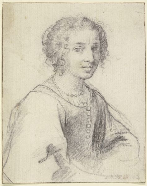 This red chalk drawing of a woman, whose artist is unknown, offers us a glimpse into the world of Renaissance portraiture, likely originating from 16th-century Venice. The drawing is more than just a likeness; it's a carefully constructed image reflecting the sitter's social status. The delicate rendering of her features, the intricate lace of her collar, and her elegant hairstyle all speak to a life of privilege and refinement. Venetian society was highly stratified, and portraiture served as a tool for the elite to assert their position and project an image of wealth and power. The drawing may have been produced as part of the workshop practice, in which studios, such as the one of Titian, employed many artists. By studying costume, social history, and artistic practices of the time, we can begin to understand the complex interplay of art, identity, and power in Renaissance Venice. Such investigations remind us that art is never created in a vacuum, but is always shaped by the social and institutional context in which it emerges.