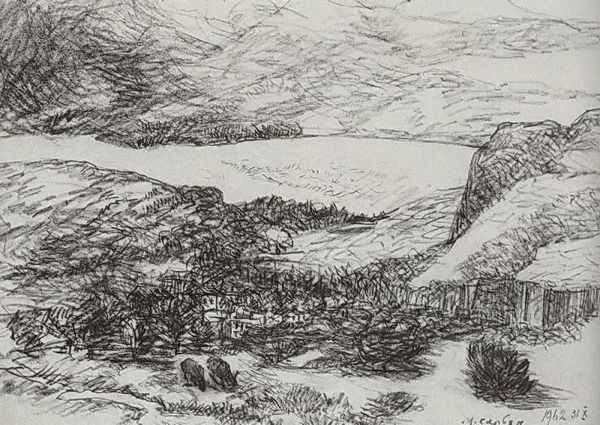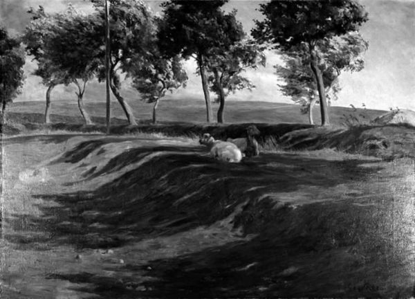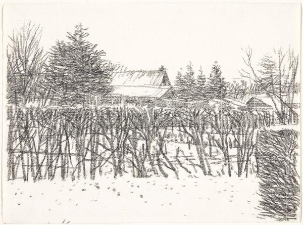 Curator: Let's discuss Poul S. Christiansen's "Skoveng," painted in 1924. It's currently held in the collection of the SMK, the National Gallery of Denmark. Editor: My first impression is one of stillness and quietude. It feels like peering into a secret, almost forgotten space. Curator: Indeed. Consider how Christiansen employs the oil paint medium to achieve such textural richness. Look closely at the foreground; see how the density of brushstrokes constructs the fern foliage. This builds the initial plane, then draws our gaze inward. What compositional elements do you perceive as particularly successful? Editor: The arrangement of the trees creates a subtle gateway, framed in an interesting 'V' shape. The lighter backdrop lures me to explore the more shaded and texturally diverse area in the foreground. Does this scene have deeper connotations connected to Nordic mythology or Romantic ideals of nature? Curator: Possibly. The painting participates in a broader artistic investigation into the human-nature relationship in Nordic culture. I suspect that a contemporary viewer in Denmark would read the image through various associations involving folk tales, national identity and cultural mythology. Editor: Are we saying this could be seen as more than a simple landscape painting? That the interplay of light and shadow creates a space laden with metaphorical weight? What’s more, a pathway toward a deeper comprehension of ourselves and our connection to the natural order, maybe? Curator: Precisely. It is more than a faithful depiction. Note also the near-monochromatic color palette, that helps the painting convey this strong feeling. It lends an almost dreamlike, melancholic ambiance. The composition allows for various readings, oscillating between the tangible and something otherworldly. Editor: It has definitely been a useful exploration to try to unearth more from it. Thank you for your refined view. Curator: My pleasure. Hopefully, listeners can now better see the ways that formal means function within a potentially wider cultural meaning, too.