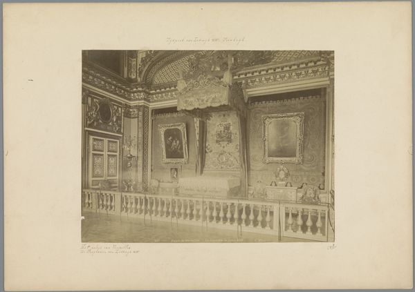 This photograph captures a bedroom in the Grand Trianon at Versailles, rendered with a keen eye for detail. Consider the labor involved to make this room. The textiles, heavy and draped over the bed, demonstrate an extensive weaving process, along with the labor needed to extract raw materials, dying, and pattern-making. Look closely at the intricate wood paneling on the walls. The craftsmanship required to carve, assemble, and gild this decoration is significant, and reflects a whole industry devoted to decorative arts in service of the monarchy. Even the chandelier overhead relies on glass-making techniques which are highly valued for their elegance. The social significance of this photograph is huge. It presents to us not just a room, but a whole system of production and consumption, where the display of wealth and power are central to its purpose. By recognizing this, we begin to understand how deeply materials, making, and context shape the full meaning of an artwork.