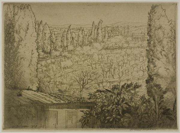 Jasper Francis Cropsey rendered this view of the Villa d’Este in Tivoli with pencil and watercolor. The towering cypress trees flanking the villa are not mere botanical specimens; they are potent symbols, reaching heavenward. These trees, reminiscent of obelisks, echo through art history, from ancient Egyptian funerary art to Renaissance gardens. Consider how the cypress, once a symbol of mourning and the underworld, evolved to signify immortality and spiritual ascent. Think of their presence in Böcklin's "Isle of the Dead," where they evoke a somber passage to the afterlife. Here, Cropsey employs them to frame the villa, creating a visual pathway that draws the eye toward the architectural marvel. This path is not just physical; it's psychological, a journey through layers of cultural memory. The trees, stoic and enduring, invite us to contemplate the cyclical nature of time and the enduring power of symbols to connect us to the past.