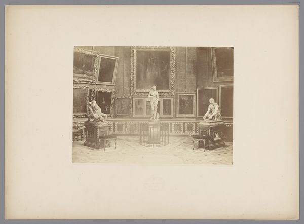 Giorgio Sommer created this photograph titled 'Zaal met brozen in Museo di Napoli,' sometime between 1860 and 1890. Sommer, who lived and worked in Italy, captured a gallery filled with classical bronze sculptures. In the 19th century, photography became a powerful tool for documenting and disseminating cultural heritage. Sommer's work reflects a widespread interest in classical antiquity, which was often seen as the foundation of Western identity. These sculptures, with their idealized forms, evoke notions of beauty, power, and heroism and reinforce a Eurocentric vision of art history. Sommer's photograph offers an opportunity to reflect on who gets to be represented in art and whose stories are told. It invites us to consider the power dynamics inherent in the act of looking and remembering. What does it mean to preserve and celebrate certain aspects of history, while others remain unseen?