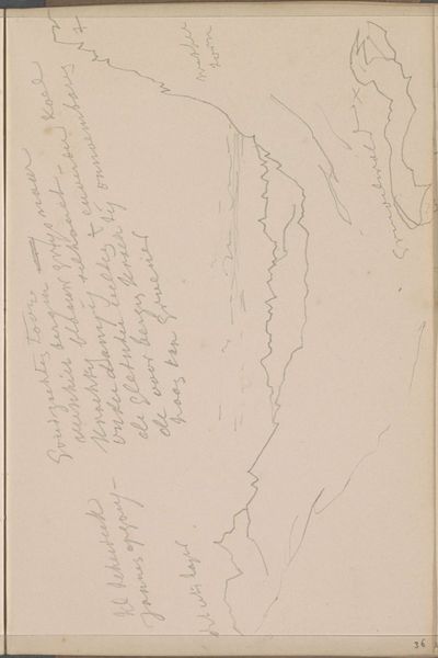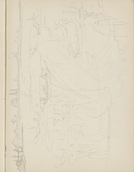 Cornelis Vreedenburgh made this pencil drawing, "Path in a Landscape," on paper, and it feels like a moment caught in time. You can see the way the pencil lines are so tentative and searching, like he's trying to find the essence of the landscape. It’s a process of discovery. What strikes me is the simplicity of it all. The texture of the paper shows through, giving it a rawness, and there’s this beautiful vertical stroke down the right side. It’s almost like a single, decisive mark that anchors the whole composition. I love how it contrasts with the delicate, almost ephemeral lines that suggest the path and the surrounding landscape. The drawing reminds me of some of Agnes Martin's work, not in terms of style but in the sense of quiet contemplation. It's like both artists are trying to capture something beyond the surface. It leaves you with a sense of openness and possibility, a reminder that art doesn't always need to be loud to be profound.