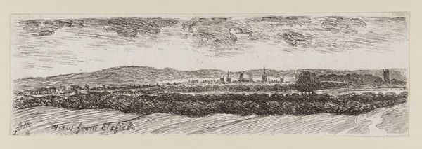 Editor: This is Birger Sandzén’s "Creek with Trees," created in 1921. It's a print, an etching really, full of densely worked lines. It's got this moody, almost restless feeling... Like a memory being scratched onto a surface. What strikes you most about this piece? Curator: Oh, that scratching—you’ve hit on something vital there! It makes me think of how Sandzén, though he painted prolifically, was also deeply devoted to printmaking. These lines aren't just descriptive; they're visceral. Look at how the sky churns. Do you see how the strokes almost vibrate against the solidity of the trees? It’s a landscape, sure, but one brimming with a wild, internal energy. It’s almost a psychological portrait, don’t you think? Editor: A psychological portrait… that's an interesting way to put it. So, it’s not just about depicting nature but about conveying a feeling, an inner state? Curator: Exactly! It’s the difference between just seeing a tree and feeling the wind in its branches, or the earth clinging to its roots. The stark black and white adds to that feeling. Sandzén reduces the landscape to its essence, a dialogue between darkness and light, solidity and ephemerality. Tell me, does that change your initial reading of “restlessness”? Editor: It does. I was just thinking about how much is conveyed with so little color. It's really a masterclass in economy! I came in thinking this was just a straightforward landscape. Curator: Aha! And now you leave considering the soul of the landscape. That’s the best kind of journey, wouldn't you agree? Editor: Definitely. Now, I'm thinking about what other stories the landscape can hold.