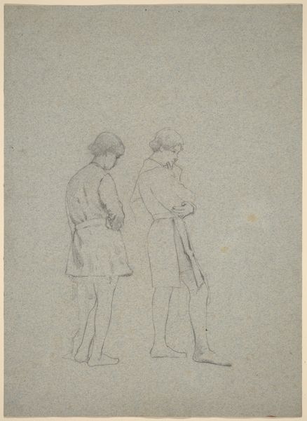 This drawing by Martinus Rørbye depicts two prisoners from the house of correction. The figures stand with a subdued stillness that belies the social stigma attached to incarceration in 1833. The prisoners' attire is particularly evocative. The neutral tones and simple cuts of their garments speak to a symbolic erasure of identity, a visual representation of their removal from society. The garments, however, bear a resemblance to beggar's garb through the ages, from medieval woodcuts to Renaissance paintings, where similar clothing signified poverty and social exclusion. Consider how the image of the 'outcast' recurs in art, a reflection of collective anxieties about societal order. These figures, rendered with a disarming calmness, tap into a deep well of cultural memory, reminding us of society's long-standing struggle with marginality and the cyclical nature of social exclusion.