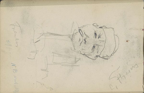 Editor: Here we have Isaac Israels' pencil drawing, "Standing Figure in Costume, Possibly a Variety Artist," from the 1915s-1925s. It's a quick sketch, almost ephemeral. I'm curious, what strikes you about this piece? Curator: It’s all about the rapid deployment of pencil on paper, isn’t it? The immediacy, the raw labor of sketching a figure from life—probably in the fleeting moment between acts, a backstage glimpse of labor itself. Notice how the costume isn't really rendered; it's merely suggested. This speaks volumes about the conditions of production: it was more about documenting the transient existence of a performer and less about the illusion they provide to an audience. Editor: So, you’re seeing this less as a portrait of someone and more as an artifact of artistic practice? Curator: Precisely. Think about the economy of gestures—the quick lines, the minimal shading. Israels wasn't interested in creating a perfect likeness; he was capturing a moment in time, documenting a worker, an entertainer, likely without their explicit consent or knowledge. In essence, this artwork itself becomes a record of labor relations, the artist "capturing" his subject who's a performer of sorts already, caught backstage in labour for capital. It questions traditional boundaries and distinctions such as high art and low entertainment as well as class structure of Dutch society at the time. How would the composition be altered, would you think, were Israels to take such position as its central concern? Editor: That makes me see it in a completely different light. I was focusing on the aesthetic of the sketch, the Impressionist style, but now I appreciate how much it reflects the social dynamics of the time. Curator: It highlights the artistic labour alongside other forms of work – one documenting or representing, and the other performing and representing in exchange of capital in a social milieu! The artist sketches rapidly, the performer dances rapidly… Editor: I guess I was too focused on the figure and not the act of figuration itself. Thank you!