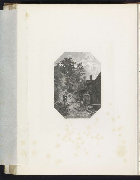 Curator: Standing before us, we have a photograph titled "Backers standing in front of the Meramec Highlands station during the St. Louis World's Fair (Louisiana Purchase Exposition)," created in 1904. It's a gelatin silver print. Editor: It has a stillness. The muted tones, that antiquated sky, and those lone figures give off such a melancholic impression, a sort of temporal isolation. Curator: Notice how the artist utilizes pictorialist techniques; the soft focus lends it that distinctive ethereal quality, somewhat blurring the line between photography and painting. It elevates a commonplace scene to a study in light and texture. The photographer, Jan Schüller, understood depth in tones, playing with gradations in the albumen. Editor: I see a deliberate composition highlighting the intersection of industrial progress and nascent suburban expansion. The Louisiana Purchase Exposition presented an idealized version of American achievement while conveniently obscuring realities of racial segregation and colonial ambition, effectively building propaganda through selective history-making. Does the photographer's viewpoint subvert or endorse the dominant narrative of the period? Curator: It is subtle work; you have to read its delicate textures. The aged paper provides context itself, of course, bringing forward its historicity. Schüller used a masterful interplay of light and shadow, that directs our eyes toward the architectural lines of the station, framing it with a sensitive, nearly romantic gaze. Editor: While technically sound and beautifully rendered, photographs of this kind offer a potent reminder that historical documentation, no matter how seemingly objective, often carries a political slant. The decision to frame Backers standing by the station omits any mention of marginalized histories. What voices are notably absent from this celebratory vision? Curator: The photographer does manage to create a captivating mood; an early, golden Americana. Editor: But can such representations of a rose-tinted yesteryear be ethically separated from the power structures in which they emerged? Perhaps that station platform supported more than simply eager tourists... Curator: Indeed, these kinds of critical questions must accompany any historical interpretation, and I am pleased that our attention has turned towards them here. Editor: A fair point indeed, hopefully some food for thought.