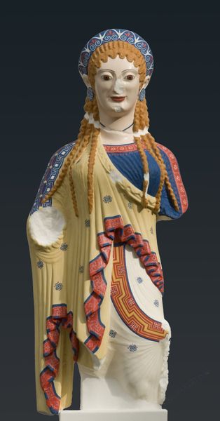 Vincenzo Onofri carved this painted terracotta bust, “A Man in Armor,” in the early 16th century in Italy, during the High Renaissance. Consider the role of armor in this period. It wasn't just protection; it was a statement of power, wealth, and identity, crafted to reflect the wearer's status. Notice how Onofri meticulously detailed the armor with gilded foliage and a grotesque mask, embellishments that speak to the values of honor and courtly life. Yet, in contrast, the man's face is soft, almost vulnerable, challenging the conventional portrayal of the unyielding warrior. The piece prompts questions about the nature of identity, contrasting the performative aspects of nobility with the inner self. It invites us to consider how societal expectations and personal emotions intersect, blurring the line between image and reality. The sculpture captures a society in transition, caught between tradition and the stirrings of change.