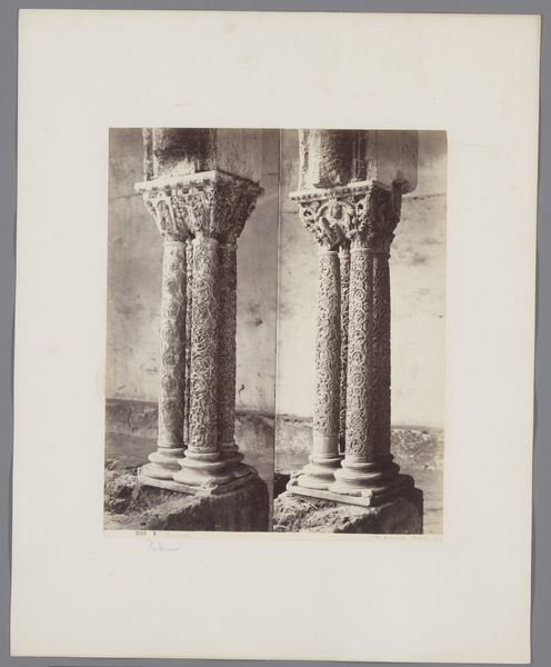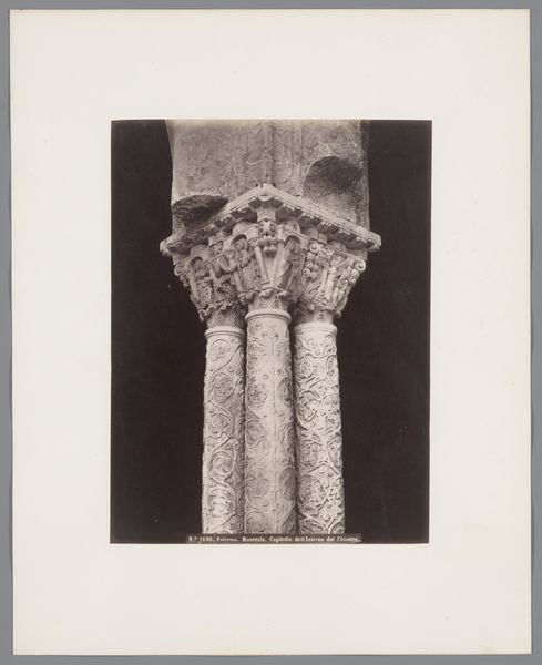 Roberto Rive made this albumen print of a column capital in Monreale, Italy, in the latter half of the 19th century. The print offers us a glimpse into the visual culture surrounding medieval architecture during a period of intense historical interest and national identity formation in Italy. Rive's choice to focus on architectural details, rather than grand vistas, speaks to a scholarly appreciation of the past. Photography, still a relatively new medium at this time, played an increasing role in cataloging and preserving cultural heritage, serving both academic and nationalistic agendas. Monreale's cathedral, with its Byzantine mosaics and Norman architecture, symbolized Sicily's complex history under various rulers. Rive's photograph invites us to consider how the medieval past was viewed and utilized in 19th-century Italy, a time marked by both the rediscovery of regional history and the drive for national unity. To fully understand the image, research into the Alinari photographic archive and other period collections might reveal the image's cultural role. This can help us see the image not just as a record, but as a cultural artifact itself.