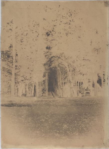Curator: This is George Kendall Warren's photograph, titled "Old Harvard Yard (Harvard, Hollis, Stoughton and Holworthy Halls)." Editor: It's quite somber, isn't it? The stark trees really dominate the scene, almost obscuring the buildings. Curator: It's a portrait of institutional space, framing Harvard's architecture through the lens of its natural environment. The framing itself invites us to consider its position in history. Editor: And the technical process itself, the photographic print, involved specific materials, labor, and a certain level of consumption to produce this image. This material reality is key. Curator: Absolutely, and the composition makes you reflect on the weight and prestige associated with these buildings, which represent centers of power. Editor: Yes, but I also see the materials used to construct the buildings and the photographic print—a reminder of the tangible processes and resources behind institutional imagery. Curator: Seeing it in this light gives me a renewed perspective on how Harvard chooses to represent itself in a historical context. Editor: For me, it highlights the physicality of knowledge production. It's been very insightful.