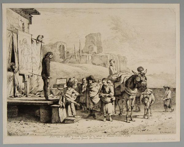 Curator: We're looking at William Valentine Schevill's "Sketch of a Funeral or Procession II," held here at the Harvard Art Museums. Editor: The scene has an undeniably somber air. The artist's quick, smudged lines evoke a sense of collective grief and public mourning. Curator: Funerals, especially in the 19th and early 20th centuries, were highly ritualized public events. Think of the social theater of loss, how gender and class shaped participation and mourning. Editor: Yes, but consider the work formally: See how the diagonal strokes emphasize the figures' downward gaze. This creates a visual weight that mirrors the heaviness of grief. Curator: The procession itself speaks to community bonds and shared experiences, but also to the power structures that dictate who is mourned and how. Editor: A keen observation. For me, the composition highlights a more universal experience. Schevill captures the human form reduced to elemental lines expressing somber reflection. Curator: Ultimately, art invites our empathy. Schevill's sketch is a potent reminder of our shared mortality. Editor: Indeed. It's a minimalist depiction of a monumental theme.