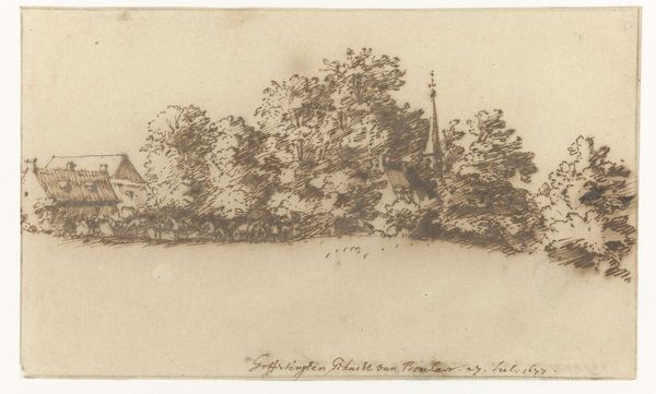 This drawing of the village of Strépy was made in pen and brown ink by Constantijn Huygens II in 1687. The scene depicts the village church, nestled amongst trees and houses, rendered with fine, delicate lines. Huygens was part of a family steeped in the political and cultural life of the Dutch Golden Age. His father was a diplomat and advisor to the House of Orange, and Constantijn II followed in his footsteps, serving as a secretary to William III. This social position granted Huygens access to the upper echelons of Dutch society and its art world, which was being shaped by the country's new political and economic power. The cultural institutions of the Dutch Republic, such as the guilds and the art market, played a crucial role in defining artistic tastes and practices. To truly understand art such as this, the historian turns to archival sources, letters, and other historical documents, so we can better appreciate the complex interplay between art, society, and institutions.