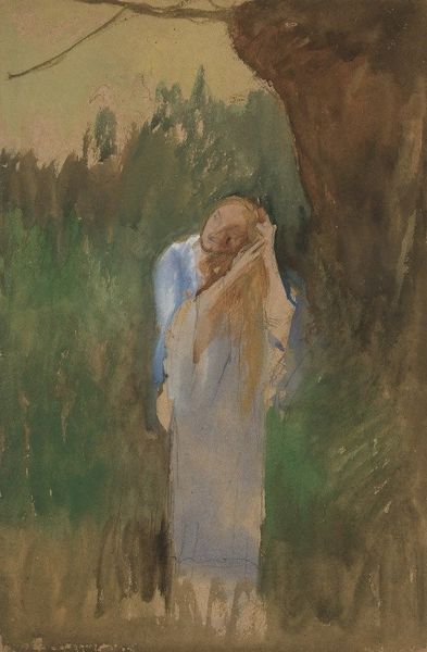 Theodoros Rallis made this evocative oil painting, Resting Greek Girl. The artist’s hand is evident in the loose, painterly brushstrokes, particularly in the background. Rallis builds up layers of earth-toned colors, creating a sense of depth and texture. In contrast, the figure is rendered with softer, blended strokes that capture the delicate quality of her repose. Looking closely, you can see how the fabric of her clothing is depicted: the texture of the woven cloth, the play of light and shadow, and the way it drapes over her form. The artist’s skillful handling of the oil paint, a common material, imbues this scene with a sense of lived reality. Beyond its aesthetic qualities, the image may also touch on themes of labor and leisure, inviting reflection on the relationship between the painting and the broader social context. Through these material choices and skilled execution, Rallis blurs the lines between fine art and craft, prompting us to consider how modes of production and social issues are conveyed through art.