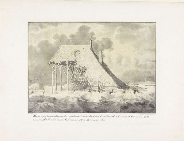 This etching, "Piramide van Waterloo", presents a somber landscape dominated by a large, conical mound set against a sky heavy with clouds. The composition is structured to draw the eye up the slope of the pyramid, emphasizing its scale and the figures dotted across its surface and the surrounding area. The use of light and shadow creates a tonal range from the pale sky to the darker foreground, giving depth and volume to the form of the mound. The etching technique allows for fine details in the landscape, drawing our attention to the people climbing the structure, their activity hinting at the pyramid's purpose as a commemorative site. The overall effect is one of imposing presence and a sense of historical gravity. The pyramid itself can be viewed as a signifier of human effort to memorialize events, and the print invites us to consider how such structures function within a larger discourse on history, memory, and representation.