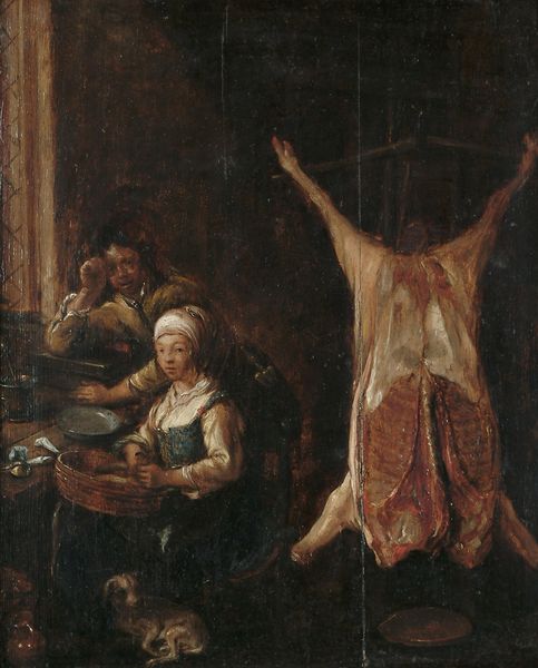Editor: Here we have Alessandro Magnasco's "Torture Scene," painted between 1727 and 1730 using oil on canvas. It certainly evokes a sense of the grim realities of power and justice in that period. What do you see in this work? Curator: The horror of the piece, so blatantly depicted, shouldn’t overshadow the context. Magnasco was working in a time of immense social stratification. What does it mean to portray such scenes so vividly, especially considering the elite patronage system of the time? Could it be read as a commentary on the brutal realities faced by the lower classes and othered communities? Editor: So, you're suggesting that Magnasco is using the scene to say something about social injustice. It's difficult to see past the shock value. The man hanging upside down… Curator: Exactly! Who is being tortured, and who is enacting the violence? Think about Foucault's ideas about power structures. How is power being visually performed here, and who is being systematically oppressed by the spectacle of punishment? The figures standing with pikes... do they remind you of other representations of state power? Editor: Yes, thinking about them in relation to, say, revolutionary imagery… So, rather than just a sensational depiction, this is a deliberate statement about the systems at play? Curator: Precisely. Art doesn’t exist in a vacuum. This “Torture Scene” prompts questions about who benefits from such cruelty, and about the relationship between art, power, and the oppressed. Magnasco is prompting a difficult dialogue. Editor: That really changes how I see it. The painting becomes a critical indictment rather than just a historical record. Curator: Understanding the socio-political currents of Magnasco's time allows us to unlock the true weight and urgency of his paintings, I'm glad to offer this understanding. Editor: Thanks, it provides such a vital new lens! I see so much more now!