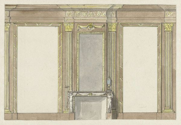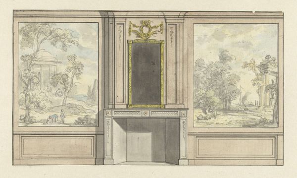 Jurriaan Andriessen created this design for a mural for Gerrit Duijm using pen, brush, and watercolor around 1770-1799. The design is a glimpse into the domestic life of the Dutch elite during the late 18th century. The symmetrical composition, pastel colors, and classical motifs reflect the prevailing taste for French Neoclassicism. Yet, the landscapes on either side of the central mirror and fireplace, divided into tile-like squares, point to the importance of Dutch pictorial traditions and the fashion for chinoiserie. Wealthy Dutch families decorated their homes with imported Chinese porcelain and wallpaper. This design suggests a desire to integrate the exotic allure of the East with a more familiar, local identity. To understand this piece more deeply, we can consult period writings on interior design and architectural pattern books. We can also look at inventories of household goods and archival records of trade with Asia to reveal the social and economic context in which Andriessen’s design would have been understood. The mural embodies the complex negotiation between local identity and global taste.