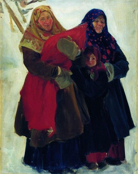 Karpo Trokhymenko's "Kateryna" is an interesting painting that captures a mother and child, probably made with oil on canvas. The colors are earthy – muted greens, browns, and creams – which gives it a grounded, human feel, like a folk song turned visual. I love how Trokhymenko handles the paint. It’s thick in places, creating texture that makes you want to reach out and touch the canvas. Look at the folds in the mother's dress; you can almost feel the weight of the fabric. Then, notice the area around the window, the way the paint is applied loosely, almost like a sketch. It’s this contrast between the detailed and the suggestive that really grabs me. It’s not just about what’s depicted, but how it's depicted. Thinking about other artists, I'm reminded of Paula Modersohn-Becker and the way she painted peasant women with a similar mix of reverence and realism. Like Modersohn-Becker, Trokhymenko invites us to see the beauty in the everyday, and to appreciate the power of painting to convey complex emotions with simple means.