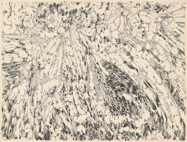 Jean Dubuffet created "Inscriptions legeres" with lithography, resulting in a textured surface of blacks and grays that might initially evoke a sense of chaos. However, on closer inspection, you will notice a deliberate arrangement that speaks volumes about Dubuffet’s formal approach to art making. Dubuffet often challenged conventional notions of beauty and form. Look at the all-over composition and the arrangement of light and dark spaces that do not adhere to traditional perspective or compositional hierarchy. The texture, achieved through lithography, creates a tactile, almost palpable surface. The semiotic reading suggests a rejection of established aesthetic values. Notice how the interplay between randomness and control destabilizes our expectations. This functions not just aesthetically but also as a statement on the nature of representation and artistic value. "Inscriptions legeres" invites ongoing interpretation and re-interpretation, challenging us to reconsider the structures of meaning in art.