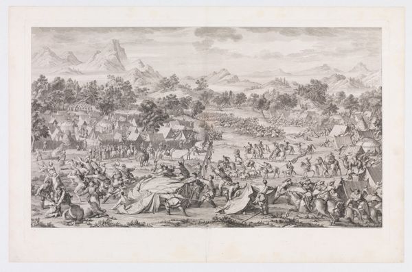 Augustin de Saint-Aubin made this print, "The Battle of Tonguzluq," using etching and engraving techniques. The image depicts a military engagement, but to understand its significance, we must consider its historical context. This print from France portrays a battle in a far-off land. France, like other European powers at the time, was deeply involved in imperial expansion and competition. Visual representations of battles served to shape public opinion, glorify military achievements, and reinforce national identity. The exotic landscape, the costumes, and the military tactics depicted here create a sense of otherness, reinforcing the idea of European superiority and the right to conquer and civilize. Studying archival sources, military records, and colonial histories can help us decipher the complex relationship between art, power, and representation in this period. Ultimately, this print serves as a reminder that art is not created in a vacuum but is deeply intertwined with the social, political, and economic forces of its time.