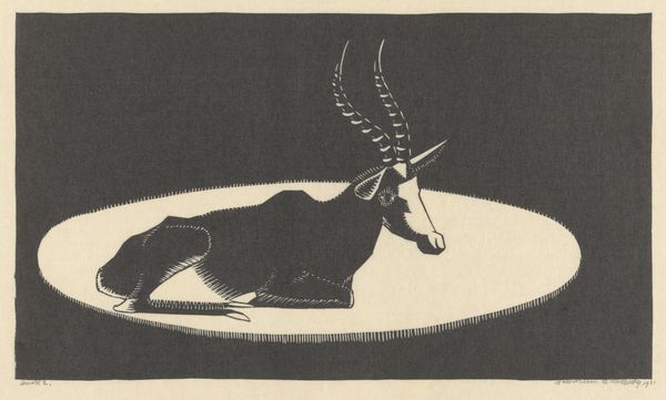 Here we see ‘Two Gazelles’, a print made by Samuel Jessurun de Mesquita, held at the Rijksmuseum. The stark black and white contrast immediately grabs our attention. Two stylized gazelles rest within a composition of bold lines and shapes, evoking a sense of serene stillness. The woodcut technique lends itself to the creation of strong graphic forms; Mesquita masterfully exploits this to distill the essence of the animals. Notice how the sharp vertical lines suggesting grass create a rhythmic base, grounding the smooth, geometric forms of the gazelles. Above, the horizontal bands abstractly suggest water, flattening the depth of field. This interplay between the animals and ground raises questions about representation and abstraction, playing with the viewer's perception. The contrast between positive and negative space destabilizes conventional notions of depth and form. Are the gazelles defined by what is, or is not, there? Consider how the inherent qualities of the printmaking medium—its capacity for stark contrasts and linear precision—serve not merely as descriptive tools, but as a means of exploring fundamental questions about seeing and knowing.