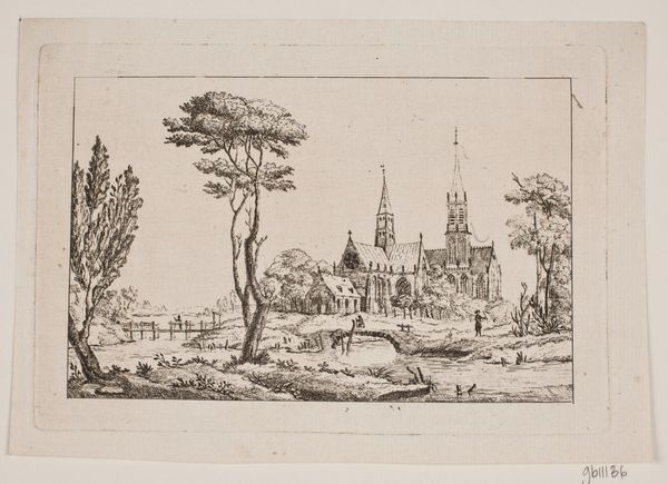 Curator: Welcome. We’re looking at "Church on a Hillock," a 17th-century drawing by Jan Abrahamsz. Beerstraten, rendered in pencil. Editor: My first thought is stillness. There’s a hushed, almost ghostly quality. The sparse lines create a sense of quiet solitude, doesn't it strike you so? Curator: Indeed. The Dutch Golden Age was, in many ways, built upon that sense of quiet, mercantile wealth creating both literal space and reflective distance between citizens and the constant tumult that preceded it. Beerstraten excelled at capturing scenes suggesting the placid face of the newly powerful Dutch Republic. Editor: It makes me think about what that stillness contains, you know? What’s hidden in the shadows around that little church? What dramas or prayers are tucked inside, and what did this sacred space mean for the landscape’s inhabitants? I am just fascinated by these buildings frozen in the mists of time, these cultural containers of feeling. Curator: Certainly, these were places where the community, the core social unit of the time, would perform shared rituals to reinforce beliefs and common cultural experiences. It’s crucial to remember how deeply enmeshed daily life was with the church's calendar of symbolic observances. This period sees landscape art entwined with religious and moral implications, right in step with this evolving era of Dutch painting. Editor: I love that! But, beyond all that history, there is also the universal, the feeling I think anyone has of stepping back into a hushed landscape. It’s beautifully rendered, the church and its small yard set against the bare trees. Curator: I agree. Beerstraten masterfully used simple pencil strokes to bring us back to that specific era, which also represented some pivotal cultural movements that shaped Europe's relationship to spiritual practice, its social orders and artistic expressions, really! Editor: Exactly, I now sense I have this new doorway into the scene. Curator: Well said, I think that offers our visitors an insight into Dutch life during this critical period.